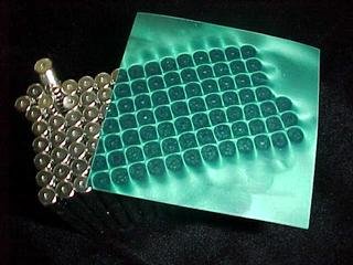Encased within the green film are millions of magnetic particles suspended in oil The viewing film will become lighter or darker when a magnetic field is applied It turns dark when the field lines are perpendicular to the surface and it turns light when the field lines are horizontal ie acros Read More..