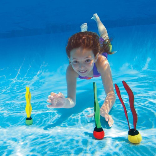 The colorful fabric tail flutters to the bottom of the pool and is easy to see and grab Host your own dive ball challenge and race to see how many you can collect Or see how many you retrieve with just one breath Comes in a 3-pack of assorted colors Ages 5 Comes with 3 colorful diveballs Has d Read More..